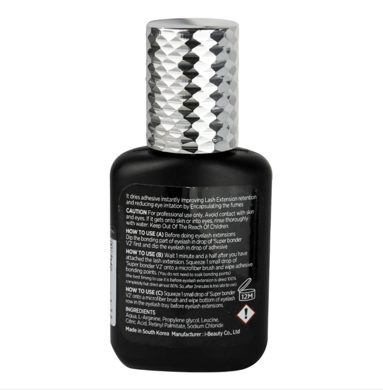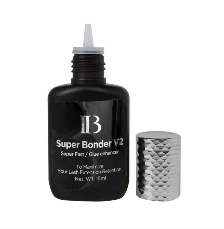 Перед наращиванием: Окуните ресницу в каплю Super Bonder V2, а затем в каплю клея.