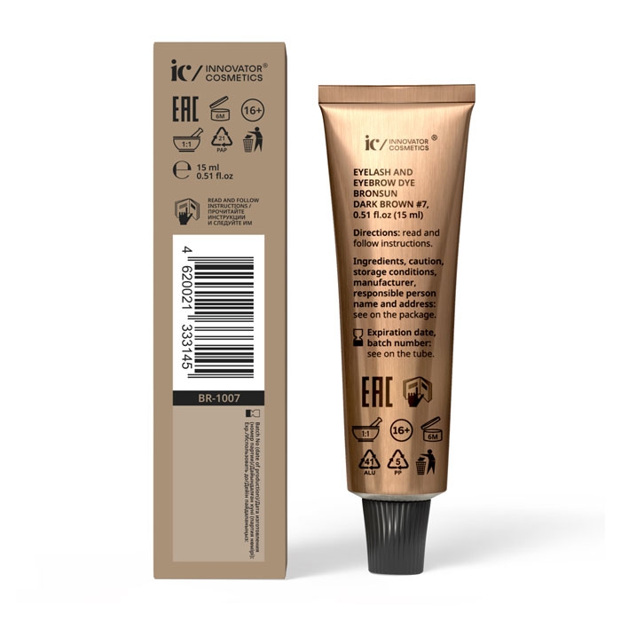 BRONSUN – экстрастойкая гель-краска для ресниц и бровей с эффектом хны: окрашивает не только волоски, но и кожу, обеспечивая выразительный и насыщенный результат. BRONSUN – чемпион по стойкости: от 7 дней на коже / от 7 недель на волосках. Гелевая текстура не растекается, комфортно распределяется по форме. Безаммиачная формула гарантирует деликатное воздействие на структуру волоса. Гель-краска не пересушивает волоски, поэтому идеально подходит для таких процедур, как ламинирование ресниц и долговременная укладка бровей. В линейке BRONSUN представлено 7 ярких оттенков, которые при смешивании между собой дают широчайшую палитру.