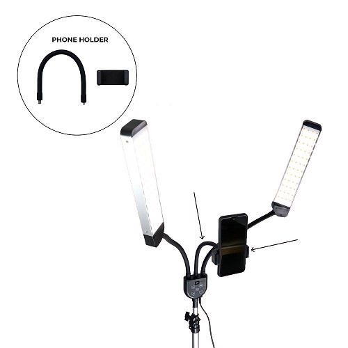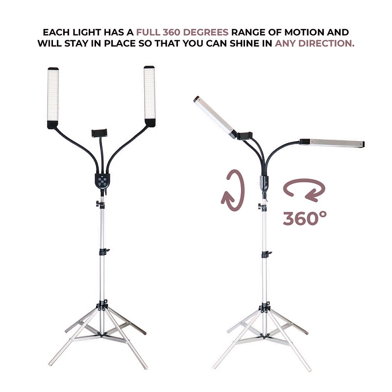 Наша новая косметическая лампа включает в себя двойные гибкие кронштейны с телескопической стойкой для удобства транспортировки и регулировки. Основание очень прочное по сравнению с другими лампами на рынке.