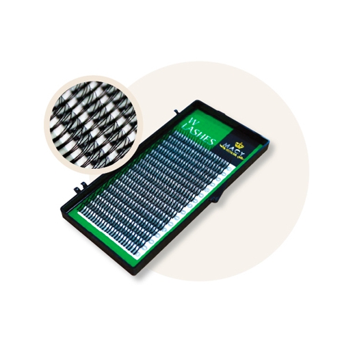 Представляют собой соединенные у основания реснички одной длины и расклешенные на кончике. Эти ресницы созданны для быстрого наращивания тройного объема. Легко снимаются с ленты и сокращают время процедуры. Ресницы для тройного объема, мягкие и эластичные.